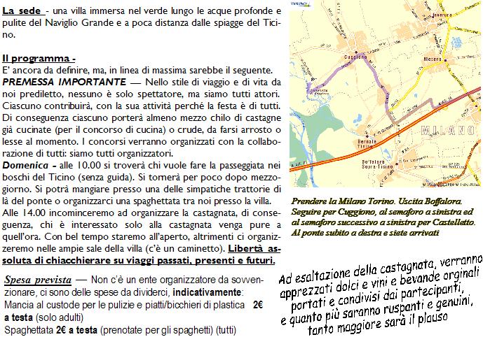 CLUB MILANO e l'ANGOLO DELLA'AVVENTURA propongono una CASTAGNATA, dove